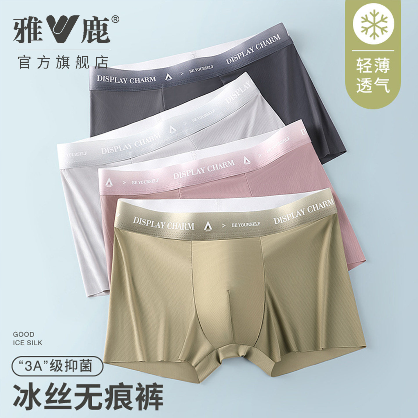雅鹿男士冰丝内裤无痕速干抗菌平角裤透气凉爽舒适四角短裤2026款