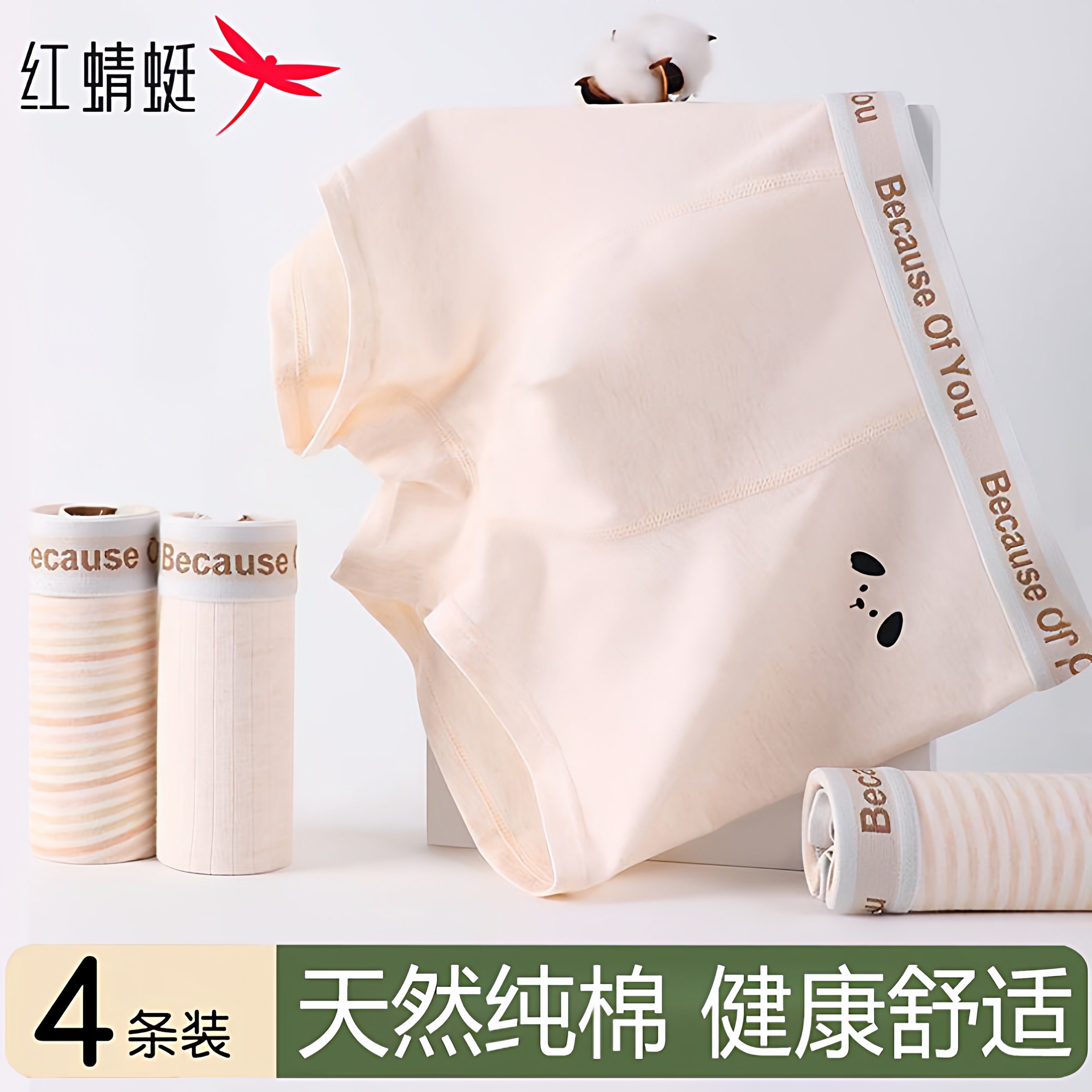 红蜻蜓A类纯棉男士内裤全裤10A级抗菌平角裤透气男款中腰运动短裤