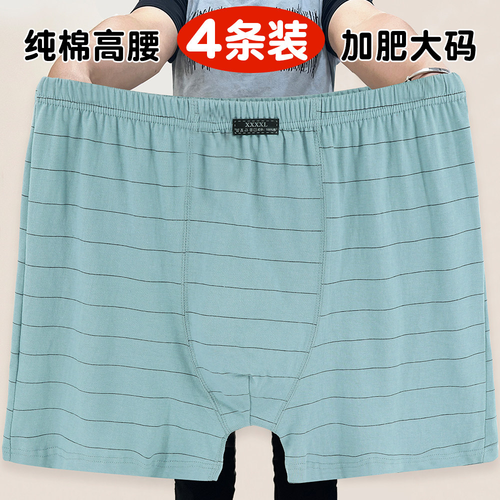 中老年全棉高腰平角裤男加肥加大码宽松条纹四角裤头老式纯棉内裤