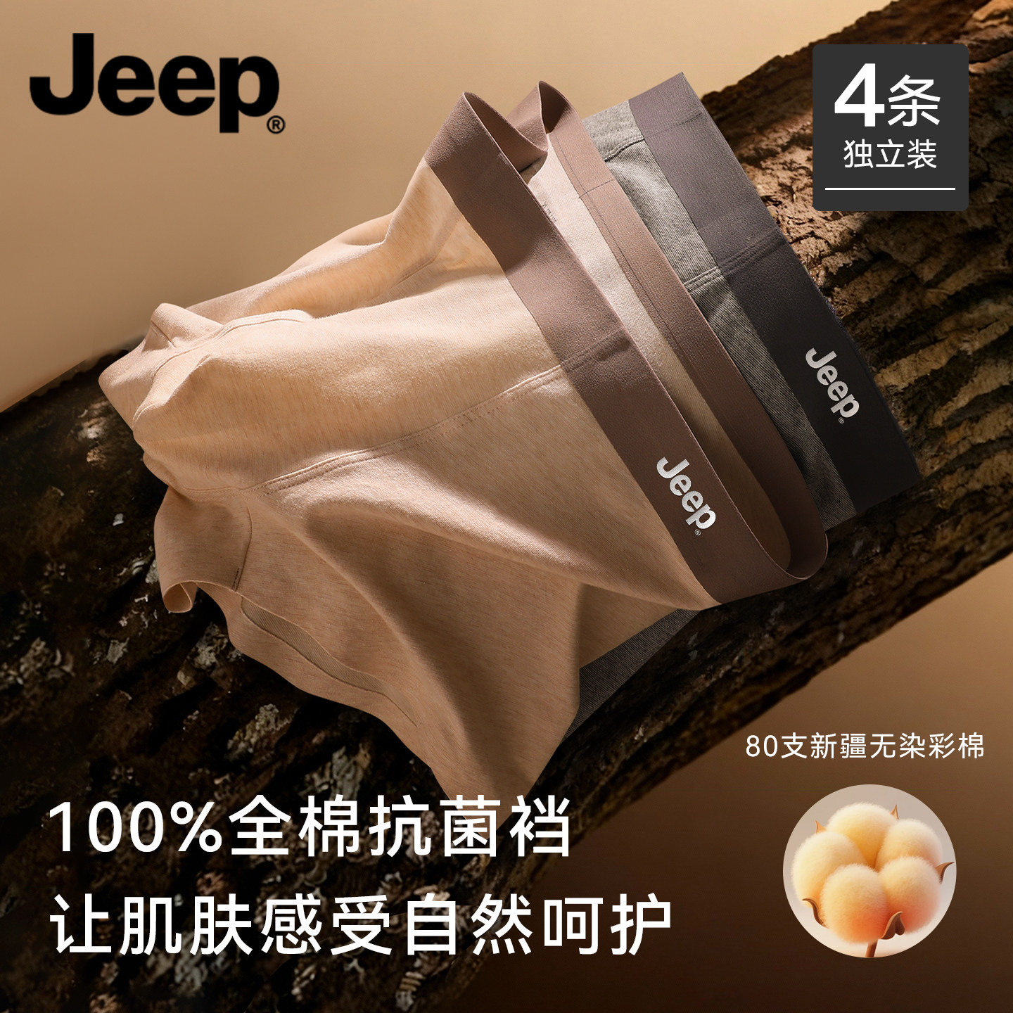 JEEP男士内裤纯棉100%全棉裆男生高档四角裤2025新款平角短裤男款