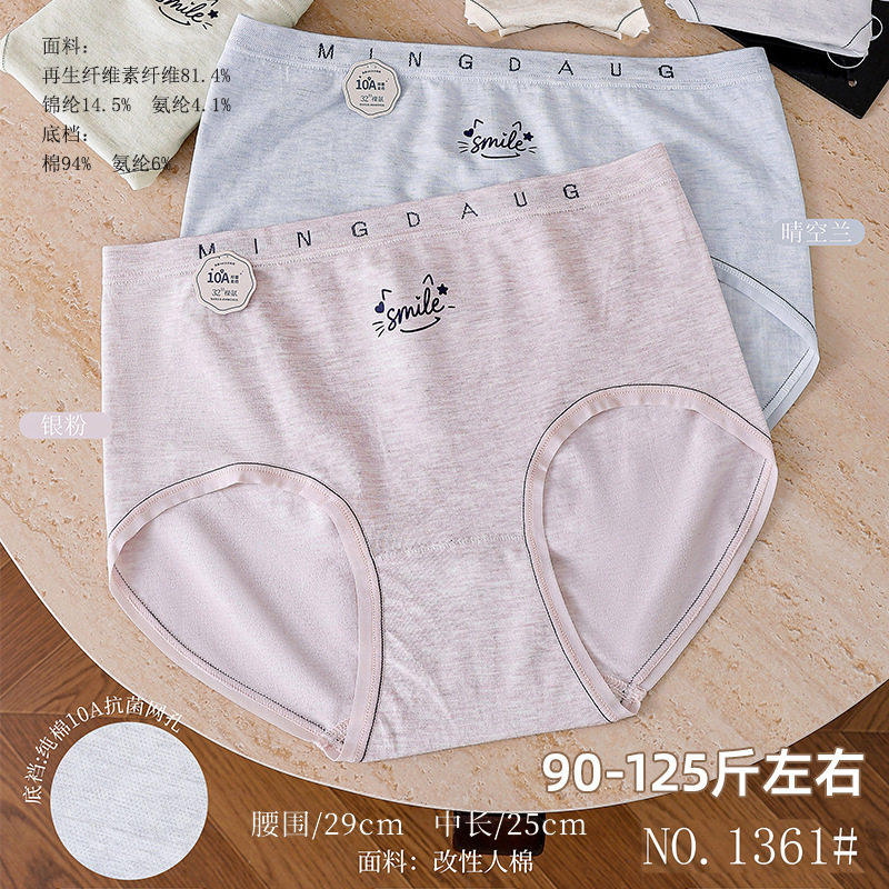 蝶安芬女内裤纯棉100%纯全棉大码中高腰三角透气宽松舒适女士内裤