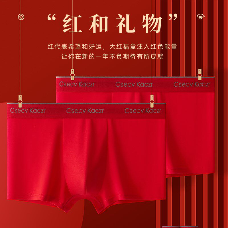 2025年本命年内裤男红色大红男士E属蛇青少年礼物红内衣送礼新款
