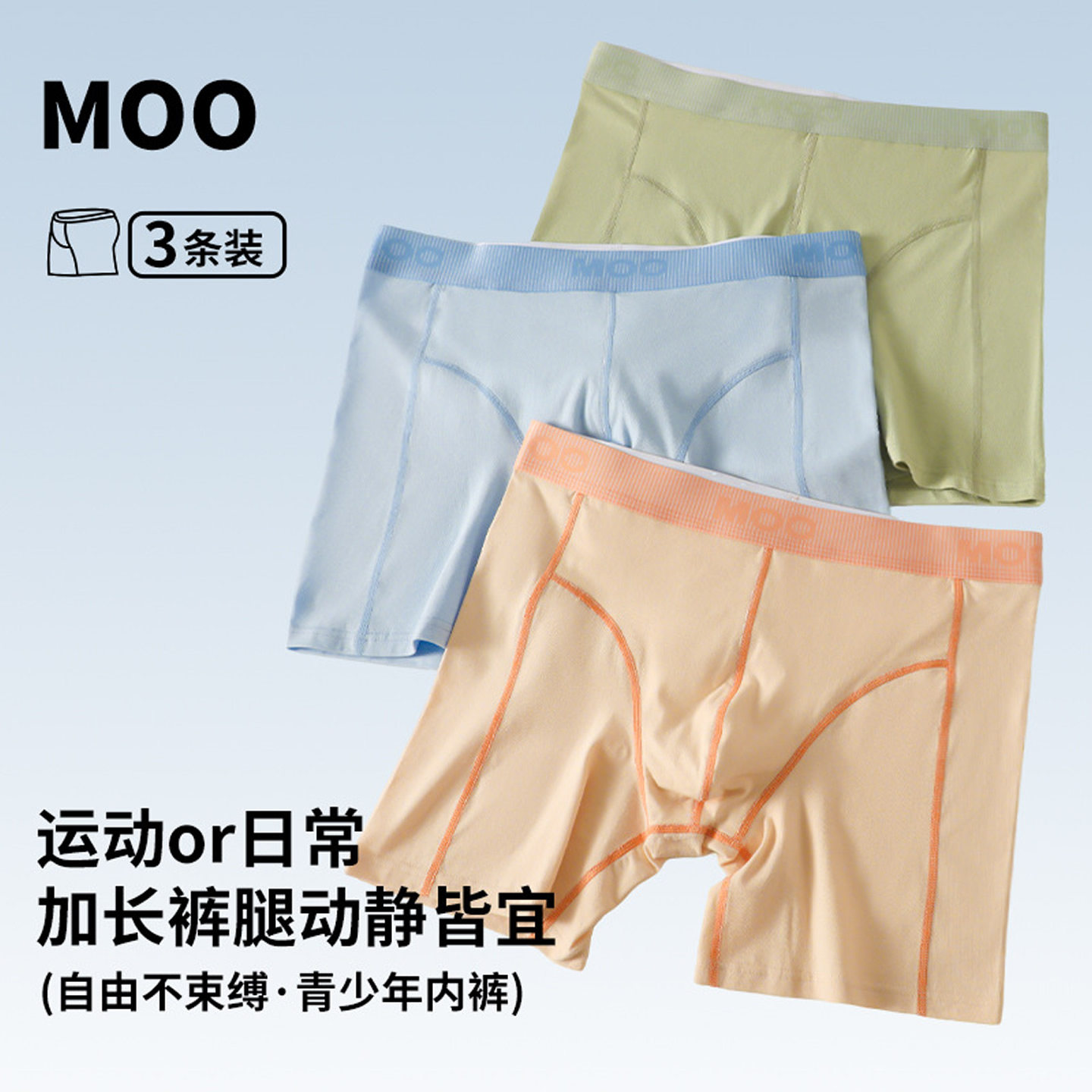 3条装男士纯棉内裤防磨腿抗菌平角夏季薄款加长加大男生运动短裤