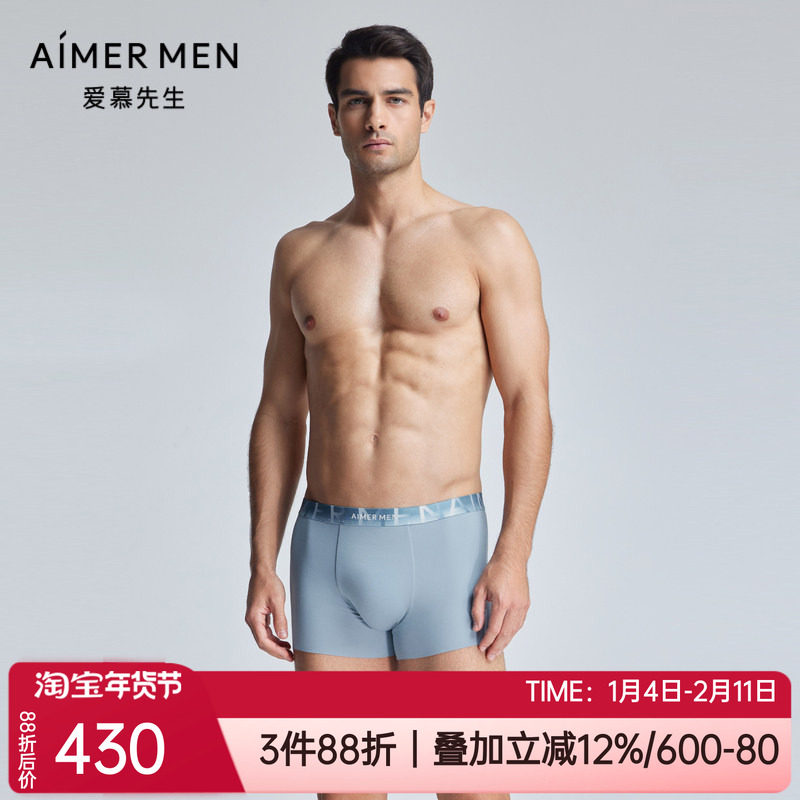 爱慕先生正品丝滑莫代尔无痕U型大空间男士中腰平角内裤NS23K771
