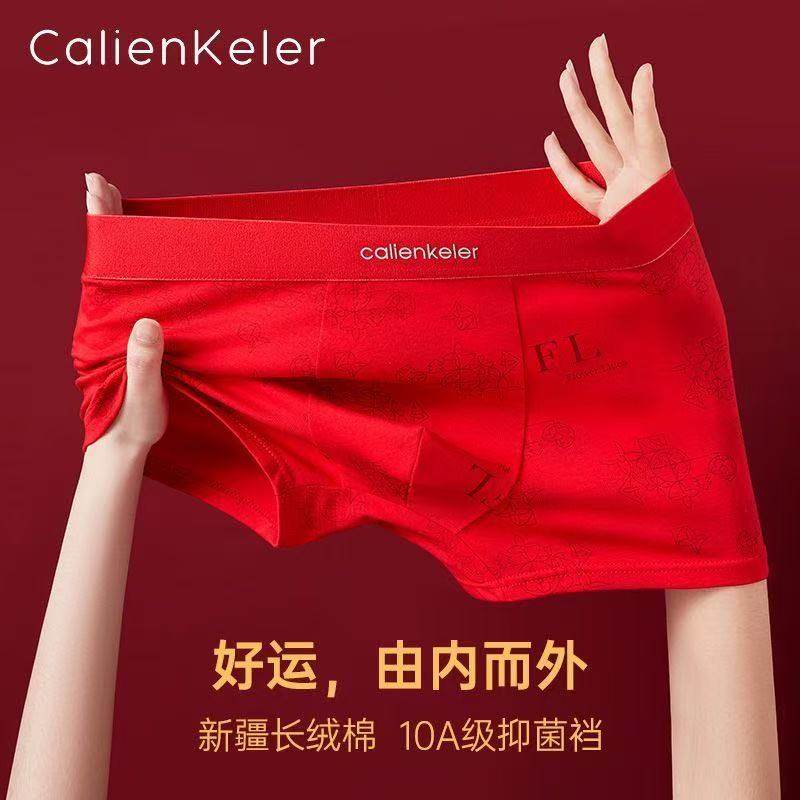 QARIEN&CK男士内裤纯棉红色四角裤送男友老公结婚生日本命年内裤