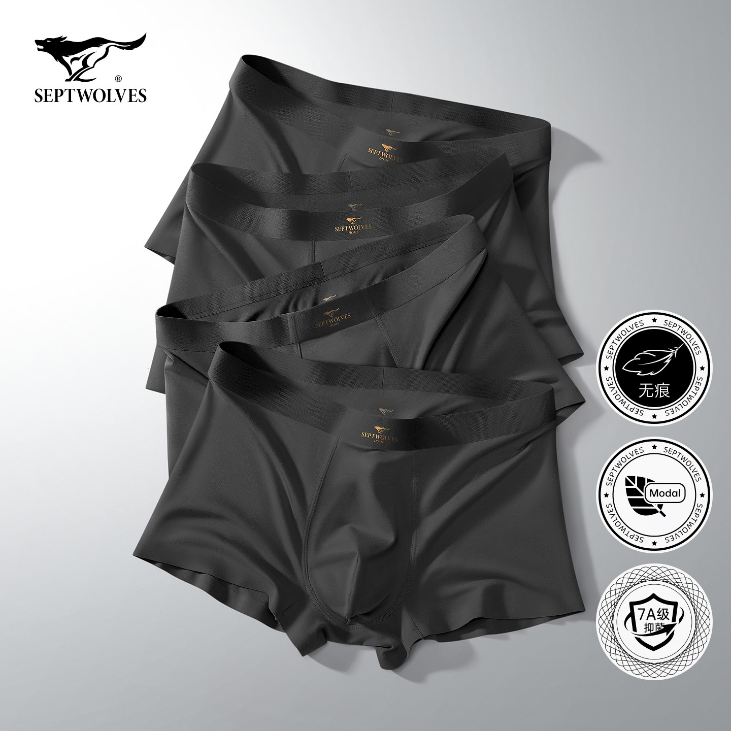 七匹狼黑色男士内裤男生莫代尔冰丝无痕平角男式透气新款四角短裤