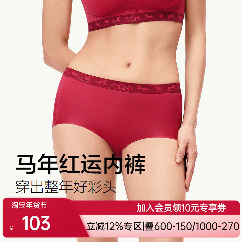 爱美丽马上有钱花新年红色内裤3A抗菌底档无痕中腰平角裤IM23CAD1