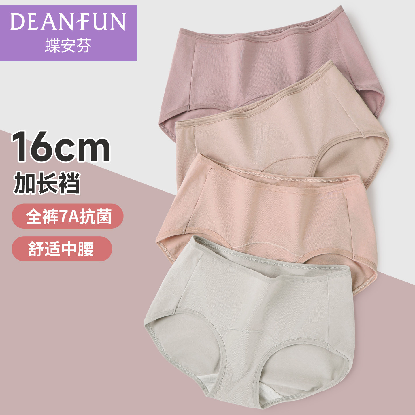蝶安芬纯棉7A抗菌女内裤加长全棉裆中腰大码夏季薄款透气女生短裤