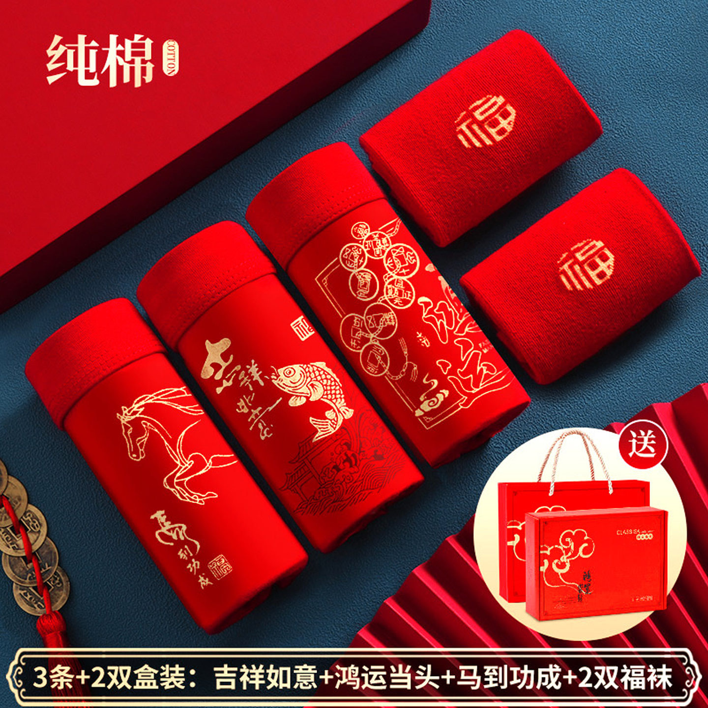 男士本命年内裤纯棉高档礼盒装男款大红色2026年新年礼物马年短裤