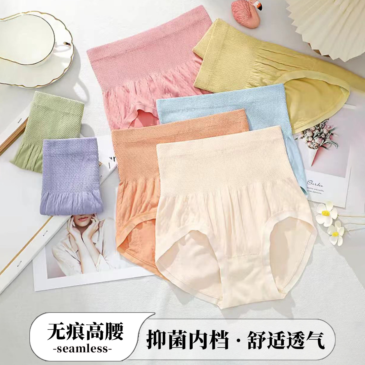 10条装高腰收腹女士内裤超弹遮肚包臀裤衩不夹裆抑菌棉裆三角裤头
