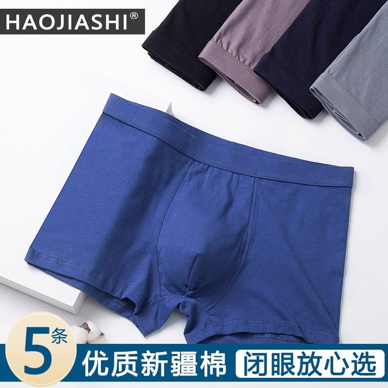 5条内裤男士四角短裤纯棉抗菌全棉大码中年纯色宽松透气平角裤头