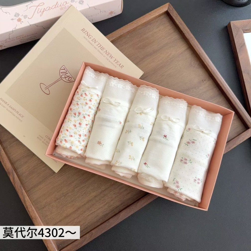 缇娅朵正品5条盒装莫代尔天丝棉抗菌棉裆中腰内裤少女印花三角裤