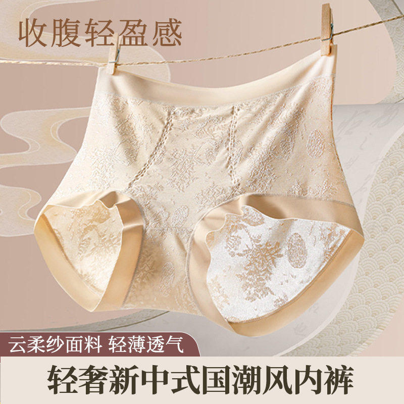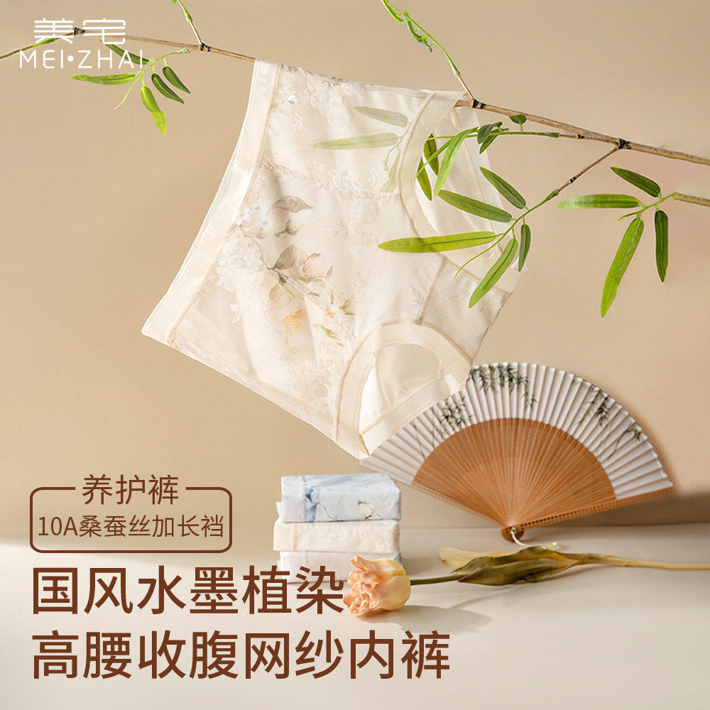 美宅国风云柔纱中高腰蚕丝底档抑菌加长底档无痕大码三角内裤女