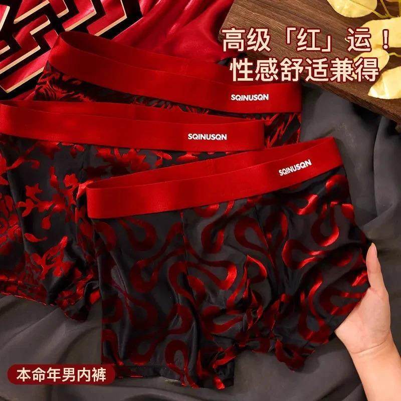姿势熊百派柚内衣专卖男士内裤轻奢性感烧花本命年红色四角裤衩7A