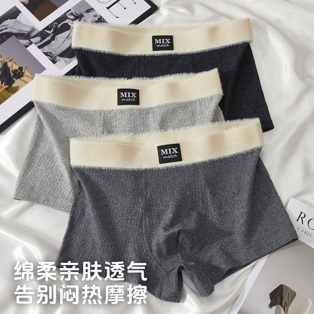 纯棉男士内裤运动高颜值黑灰四角裤10A透气抑菌款绵柔男平角短裤