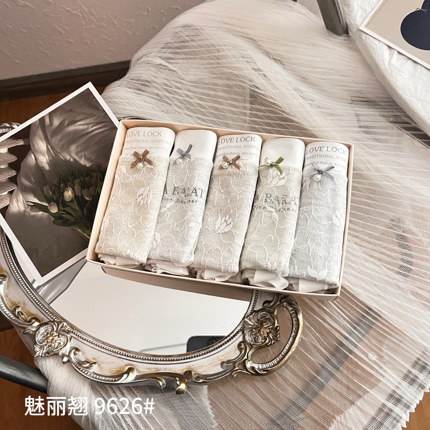 魅丽翘9626中腰蕾丝蝴蝶结内裤女纯棉抗菌裆透气舒适包臀三角短裤
