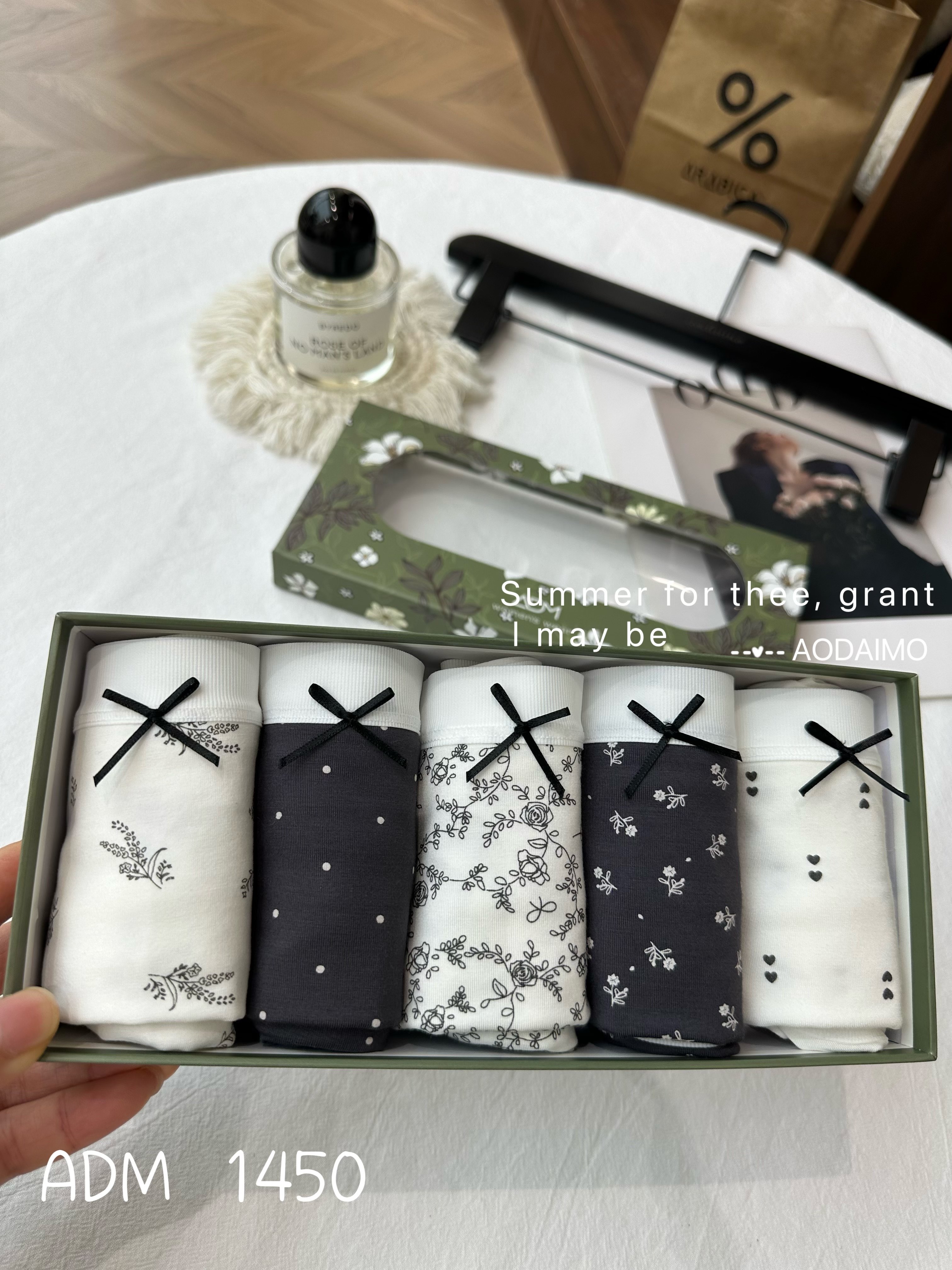 奥黛茉1450透气裸感棉小碎花撞色日系内裤中腰包臀亲肤透气三角裤