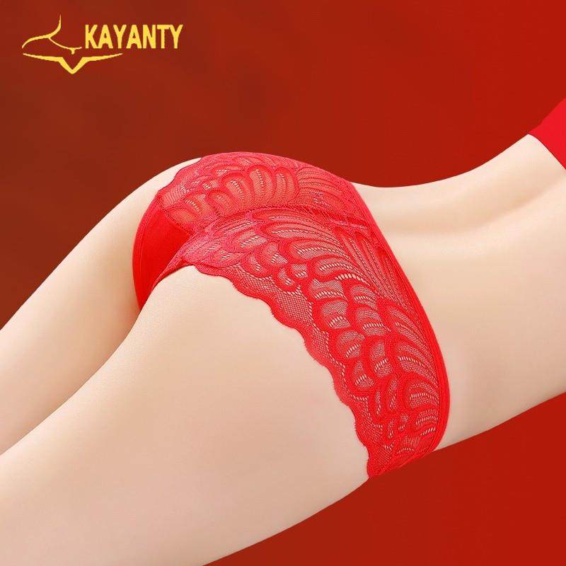 维多利红色内裤女蕾丝性感纯棉抗菌裆龙年本命年中腰无痕三角短裤
