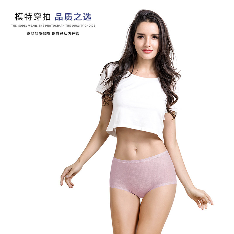 惊呀弹力棉提花蕾丝腰边棉质中腰女式内裤