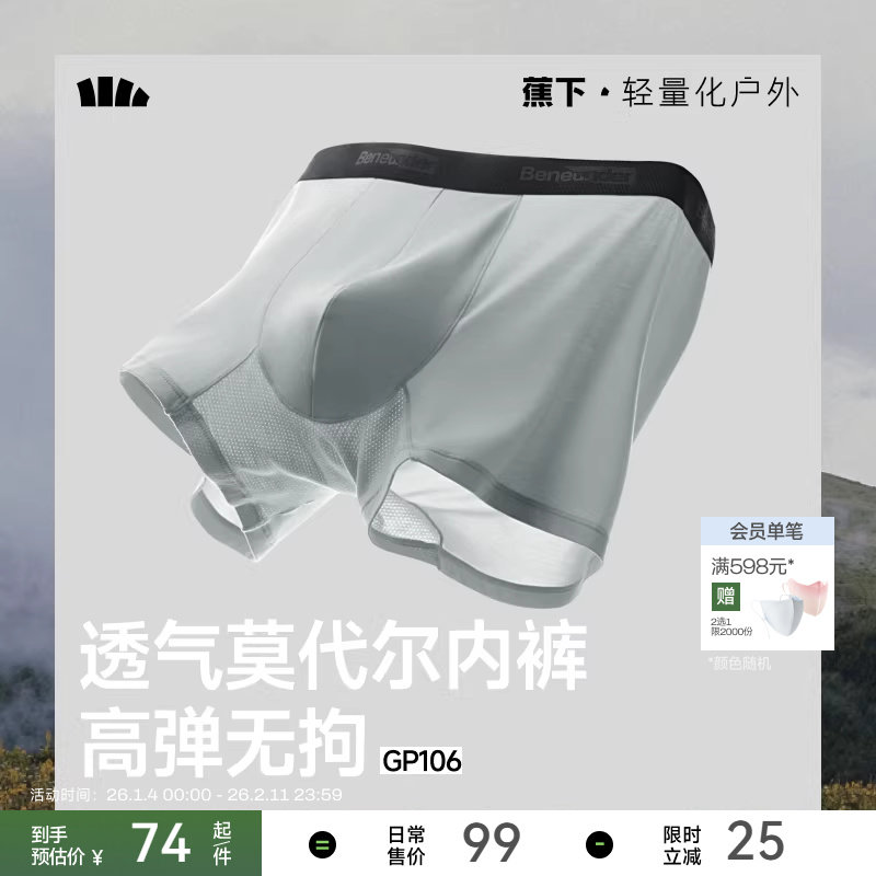 蕉下男士莫代尔棉质内裤SF386四季透气底裤3条装平角内裤短裤男士
