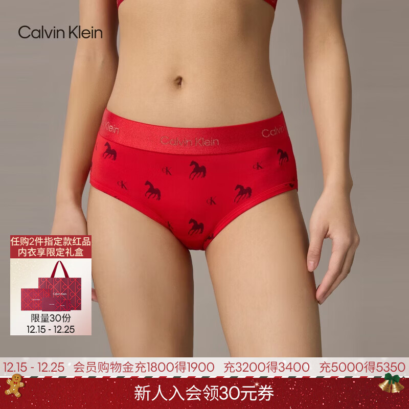 Calvin Klein内衣【圣诞礼盒马年系列】25秋冬女士本命年新年红ck半包臀内裤女 1HR-骊驹红 M