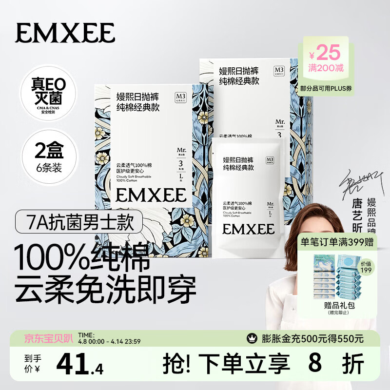 嫚熙(EMXEE)E3一次性内裤平角全棉纯棉短裤四角旅行成人免洗男士内裤大码 7A抗菌100%纯棉【男士款 6条】 XXL 建议150-170斤
