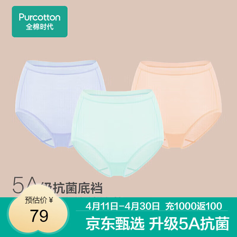 全棉时代女士高腰【年度热销款5A抗菌】高弹不变形不闷汗内裤女3条装