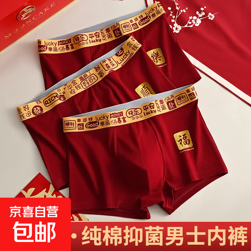 本命年男士内裤男生纯棉大红色蛇年新款结婚四角短裤青少年平角裤