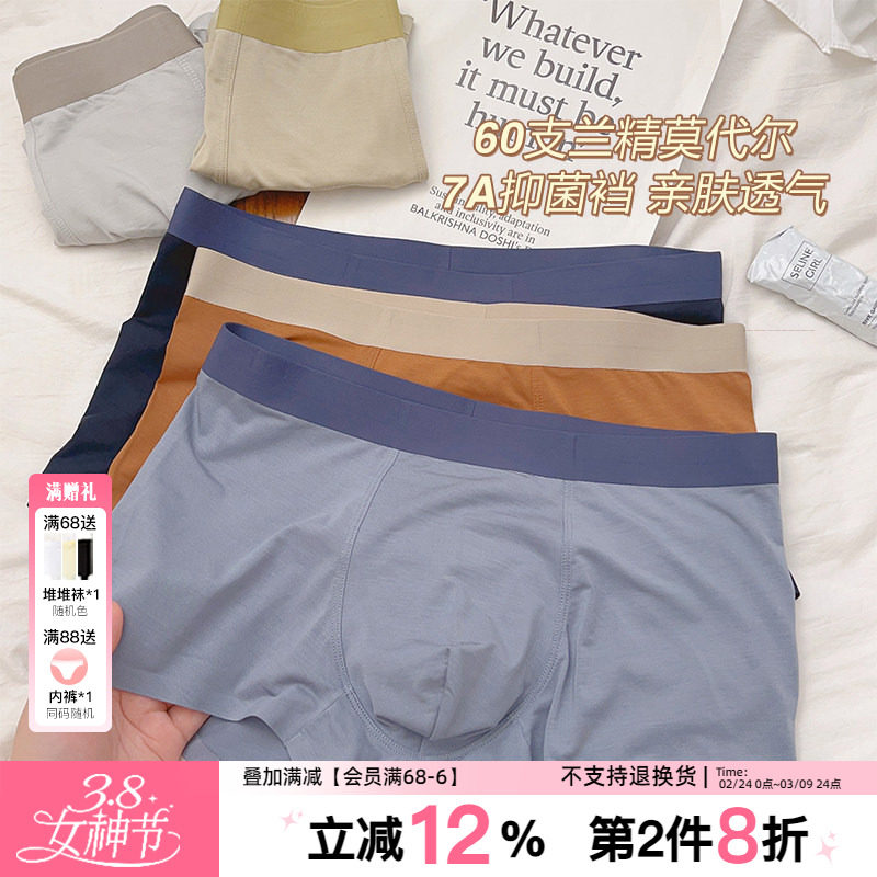 商务兰精 | 60支莫代尔男士内裤7A抑菌平角裤秋季青年男四角短裤