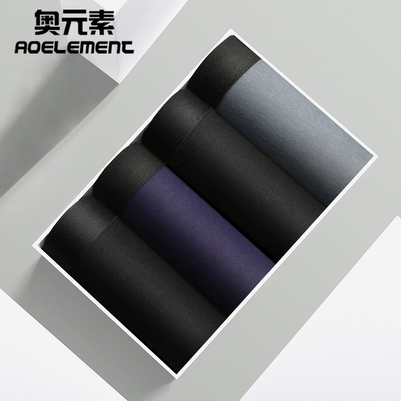男士裆部双层四角内裤莫代尔棉无痕U凸囊袋青年性感平角裤裤衩