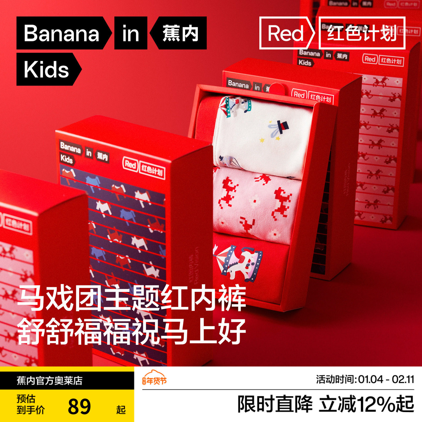 3件|蕉内红色计划520Color男女童儿童内裤菌印花棉感本命年
