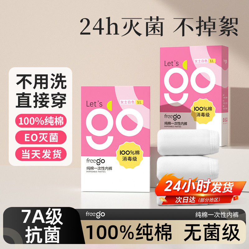 Freego一次性内裤女纯棉无菌旅行免洗短裤女士产妇月子大码日抛裤