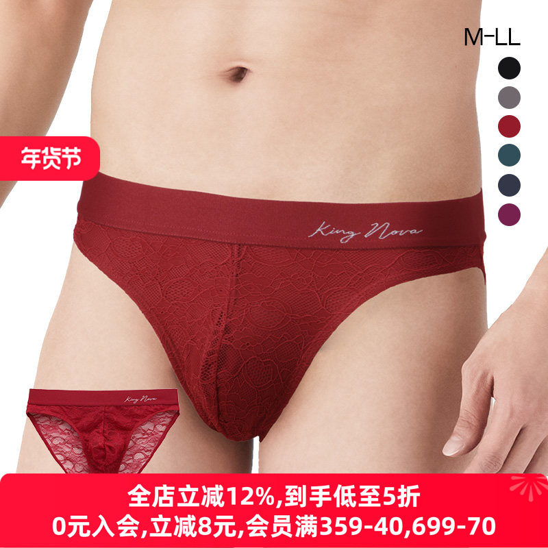 诗萝涵朵SHIROHATO男士内裤透明蕾丝性感无痕低腰红色三角裤男