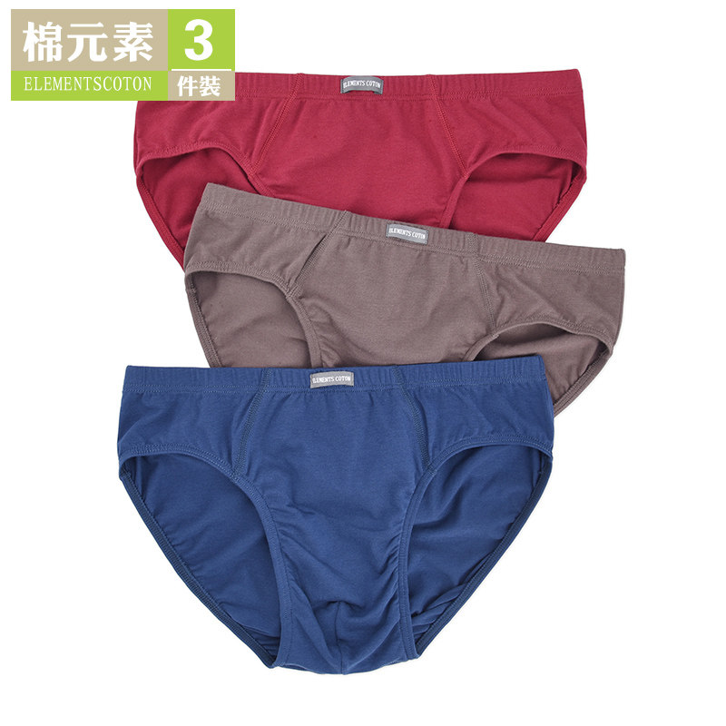 棉元素男士内裤舒适弹力棉质中腰三角裤男纯色三角内裤3条装S2456
