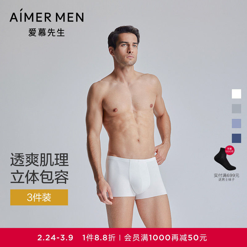 【3件装1号裤2.0】爱慕先生80支罗纹莫代尔高弹男士平角内裤春夏