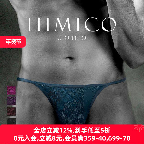 HIMICO男士内裤柔软舒适全蕾丝镂空透明诱惑性感透薄丁字T裤U001