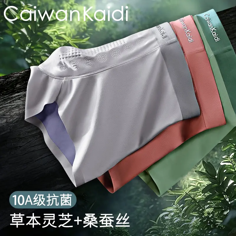 CaiwanKaidi托玛琳按摩颗粒10A抑菌灵芝草本内裆透气平角男士内裤