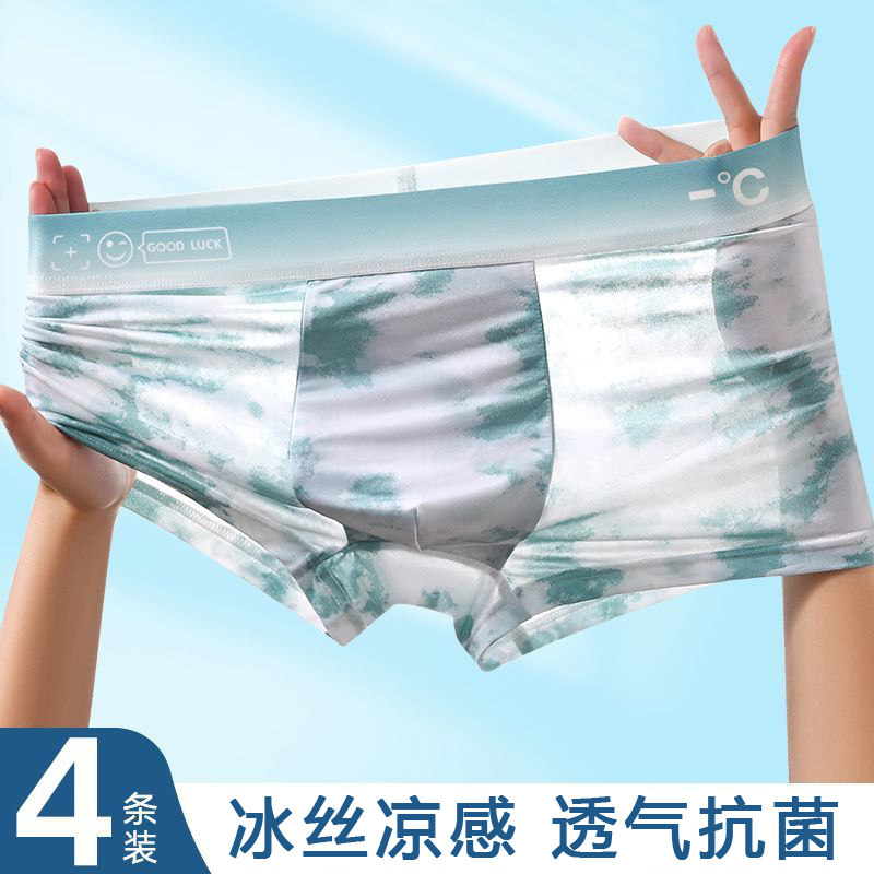 4条印花冰丝内裤男士大码抗菌平角短裤头夏薄款凉感速干四角裤衩