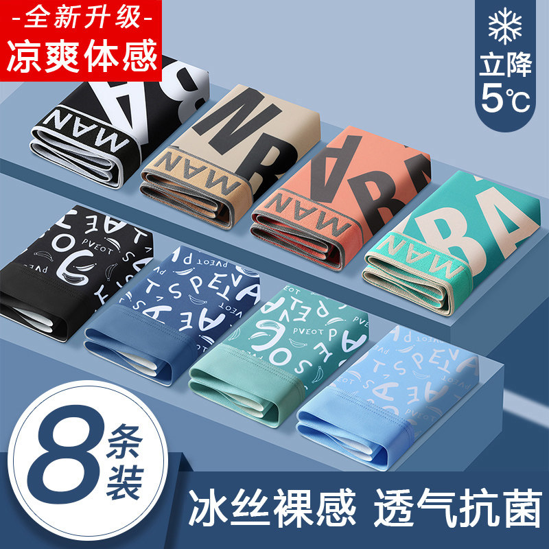 8条男士冰丝内裤青年潮男生抗菌平角短裤新款夏薄凉透四角运动裤