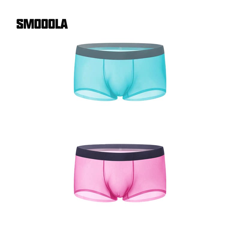 2条装男士内裤平角裤低腰窄边性感冰丝薄款半透明纯色四角裤包邮
