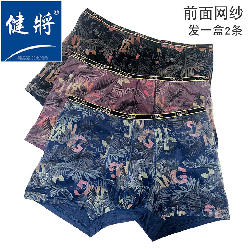 中腰新品健将细边网纱粘纤平角男士内裤前面网纱后面粘纤男平角裤