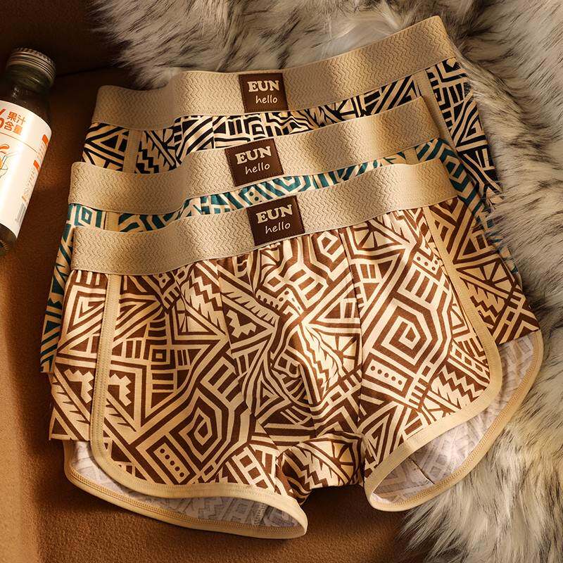 民族风男士内裤棉质潮流舒适透气时尚复古玛雅图腾几何运动四角裤