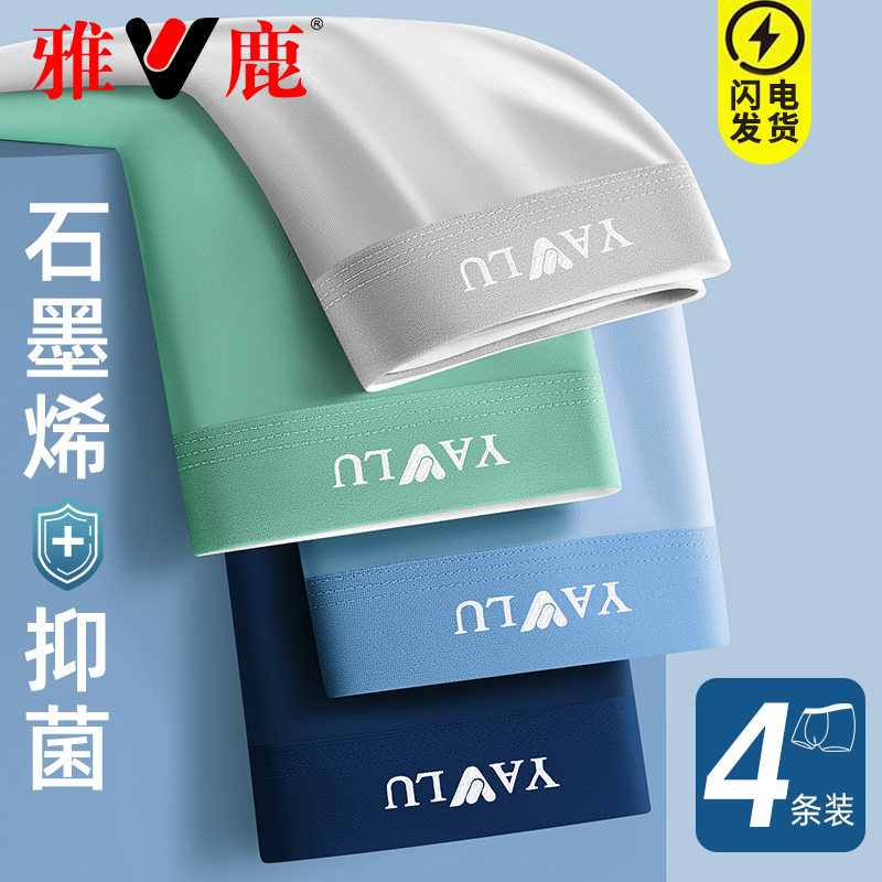 雅鹿男士冰丝内裤四角裤夏季薄款男式大码宽松平角裤青少年短裤头