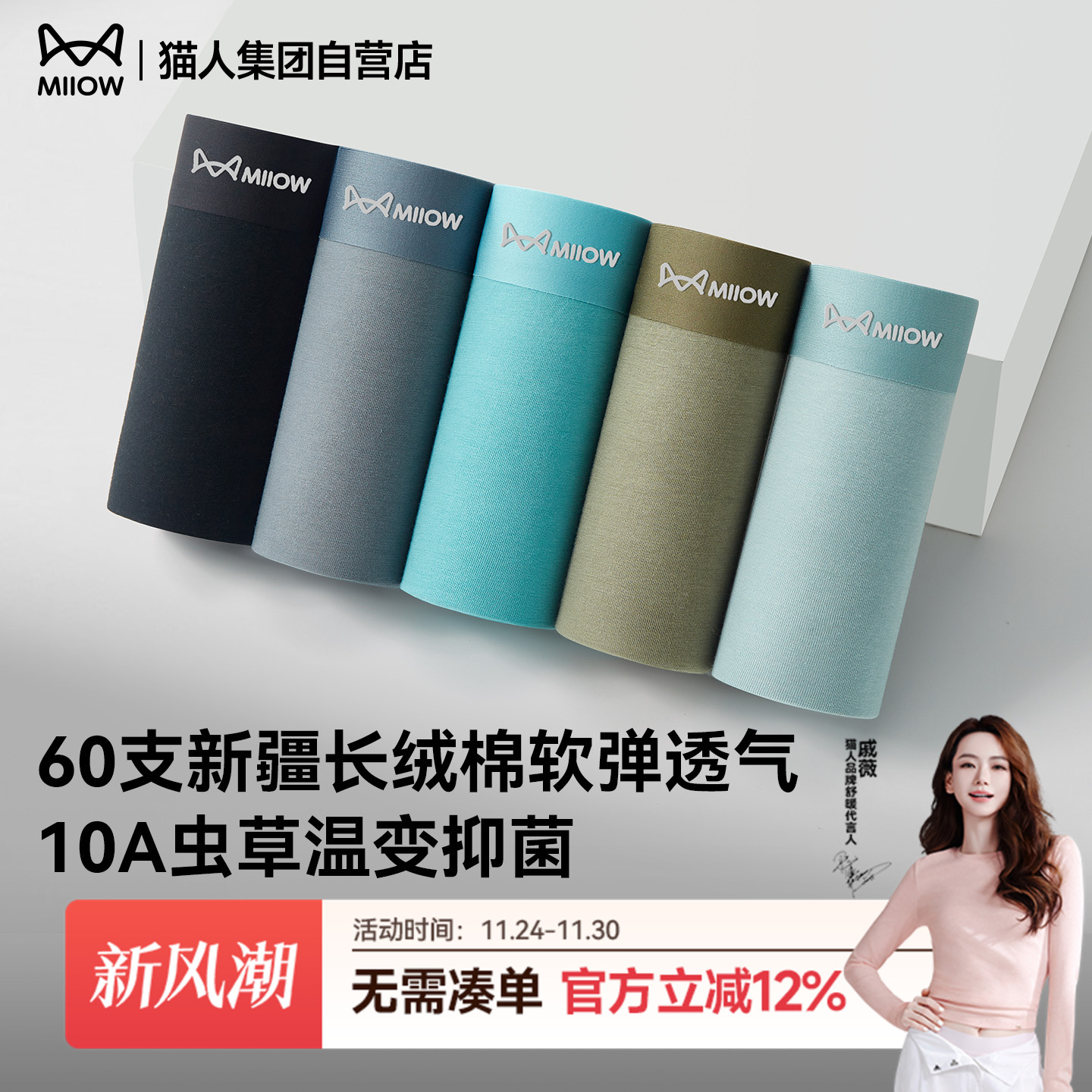猫人男士内裤虫草抗菌裆25新款男生四角裤衩男款平角短裤头男裤衩
