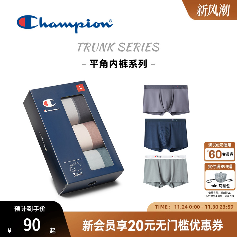 champion冠军25秋冬新款男士平角内裤短裤弹力舒适贴身三条盒装