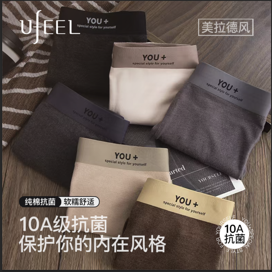 UFEEL男士内裤10A抗菌磨绒美拉德无痕透气秋冬四角亲肤内裤21811