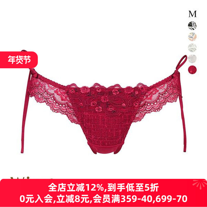 诗萝涵朵丁字裤女日系蕾丝刺绣性感本命年红色低腰女士内裤413
