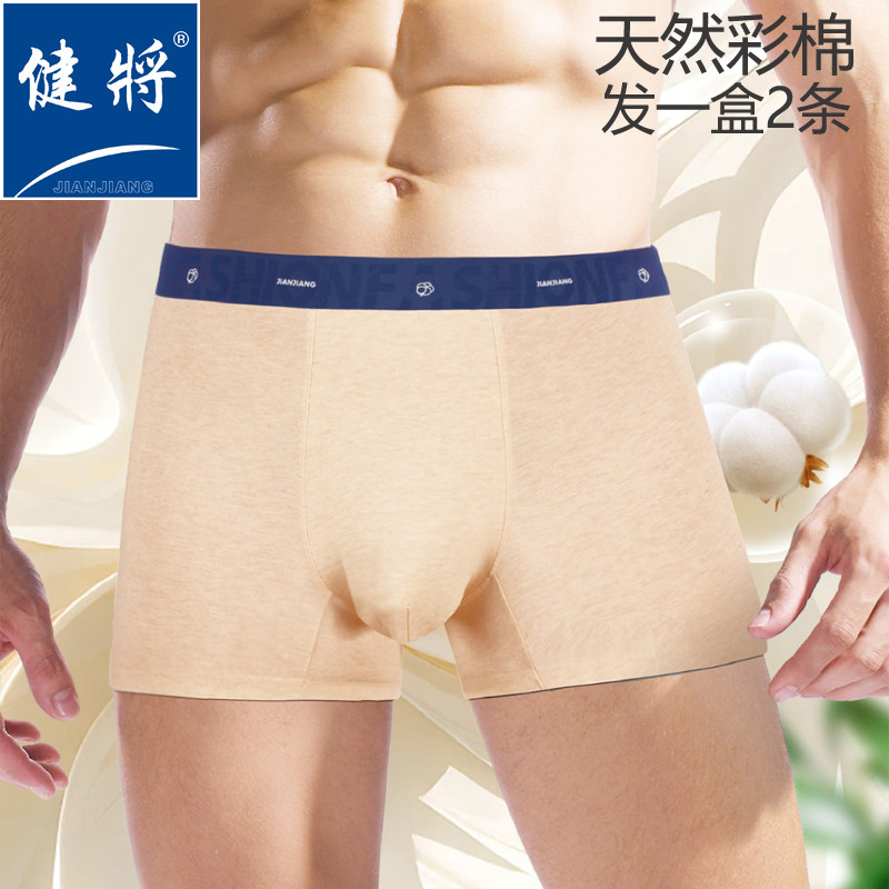 健将男士中腰平角内裤天然彩棉抗菌裤裆网孔透气宽边撞色设计时尚