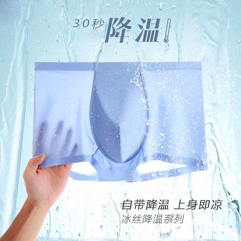 夏日凉爽冰丝男士内裤空调裤舒适透气柔软中腰平角大码男青年四角