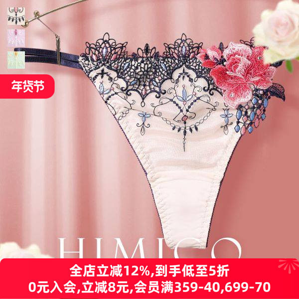 HIMICO内裤女柔软透气重工刺绣蕾丝性感细带双环低腰丁字T裤021